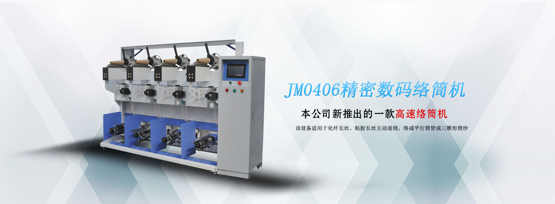JM0401精密數(shù)碼絡(luò)筒機是本公司新推出的一款高速絡(luò)筒機。該設(shè)備適用于化纖長絲、蠶絲、粘膠長絲的松式絡(luò)筒及包覆并紗倒筒。